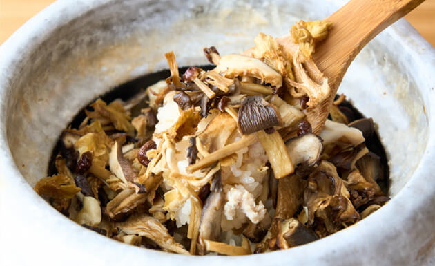 きゅっと冷水で引き締めた蓮根素麺を温かいきのこの出汁でお召し上がりいただきます。