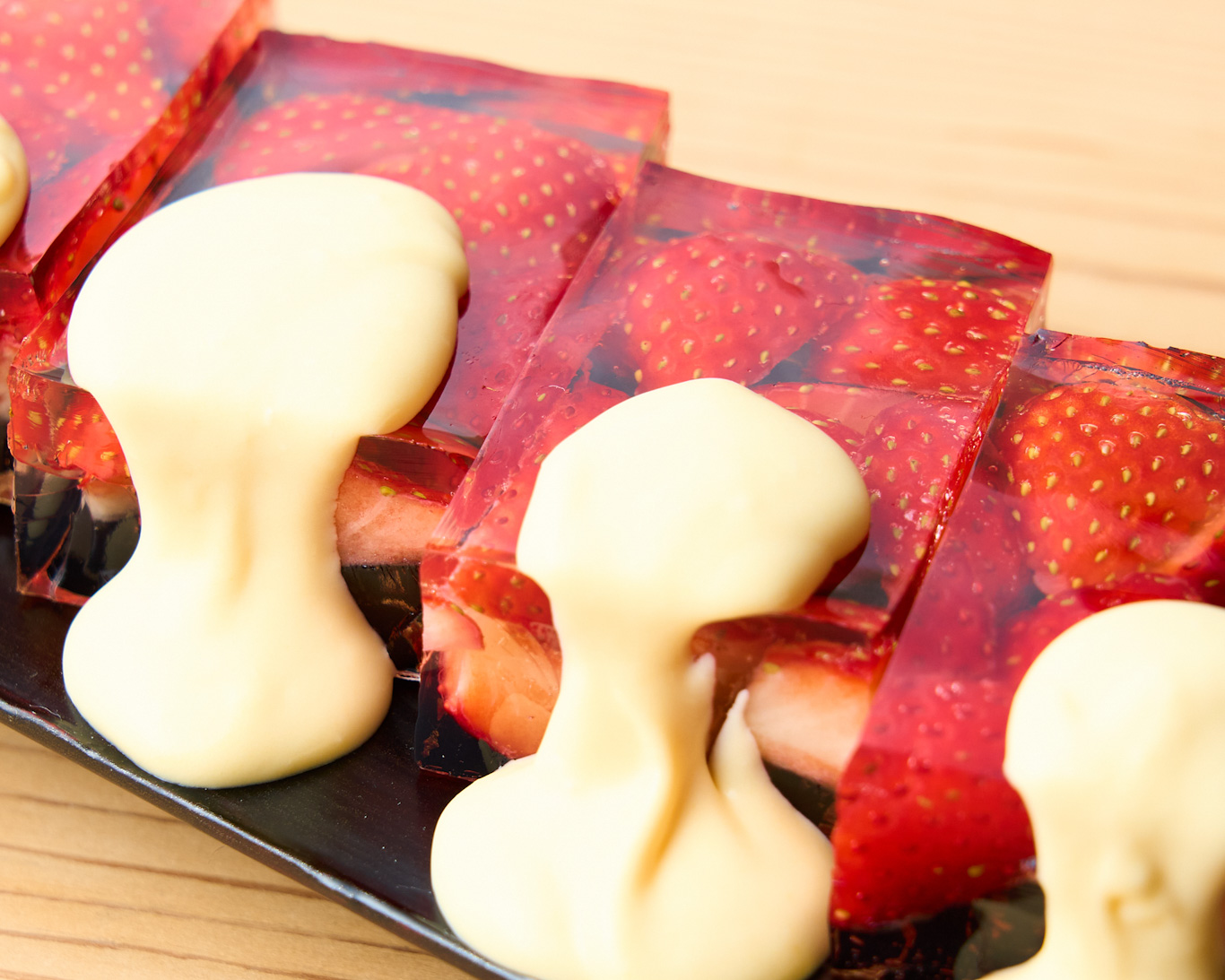 ゼリーを切ったときに、色や形が鮮やかに見えるよう、程よい大きさにカットしました。